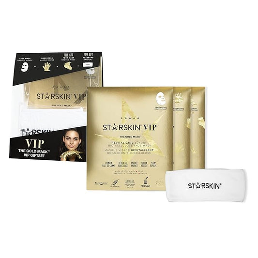 STARSKIN VIP The Gold Mask Giftset - High-end Gift - Complete Collection - Includes Hand, Foot, and Face Masks Headband