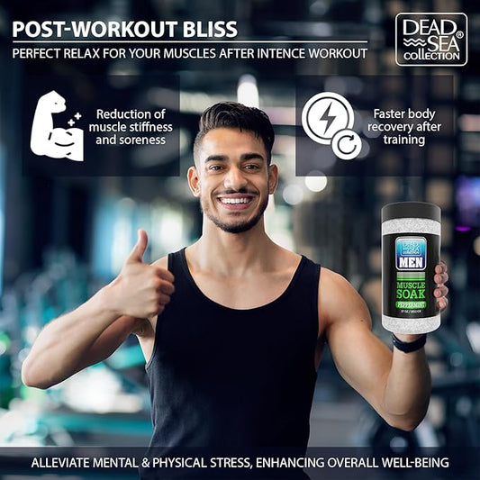 Dead Sea Collection Bath Salts for Men with Peppermint Oil - Muscle Recovery Bath Soak – Mens Pure Dead Sea Salt for Soothing and Relaxing – 37 Oz