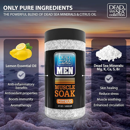 Dead Sea Collection Bath Salts for Men with Citrus Oil - Muscle Recovery Bath Soak – Mens Pure Dead Sea Salt for Soothing and Relaxing – 37 Oz