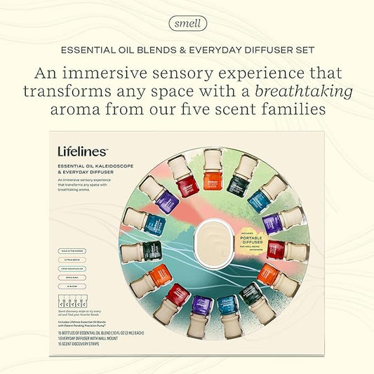 Lifelines Essential Oil Blends Collection Gift Set with Everyday Diffuser, 15-Pack - Blended Essential Oils for Aromatherapy Diffusers - Scented Fragrances for Joy, Calm, Focus & Energy