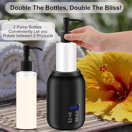 Massage Oil Heater Warmer,with ℃/℉ Switchable Display, Two Oil Dispenser Bottle,Constant Temperature,Body Oils Heater for Spa, Salon and Barber Shops,Black