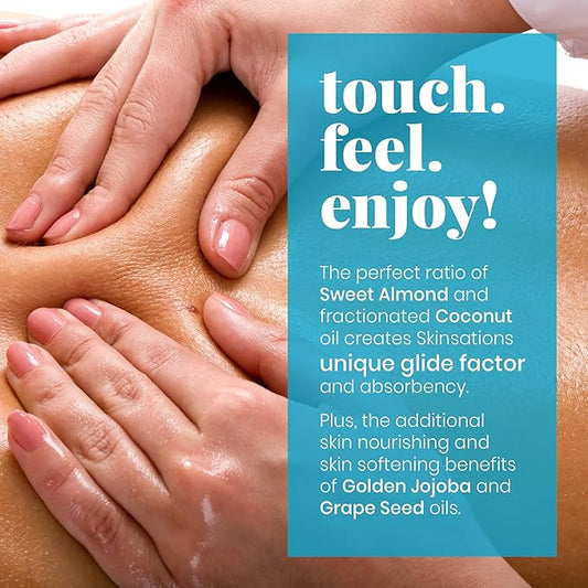 Skinsations - Lavender Massage Oil for Massage Therapy - 16oz | Muscle Relaxing Blend of Sweet Almond, Fractionated Coconut, Grapeseed and Jojoba Oil | Scented Body Oil, Sore Muscles, Aromatherapy