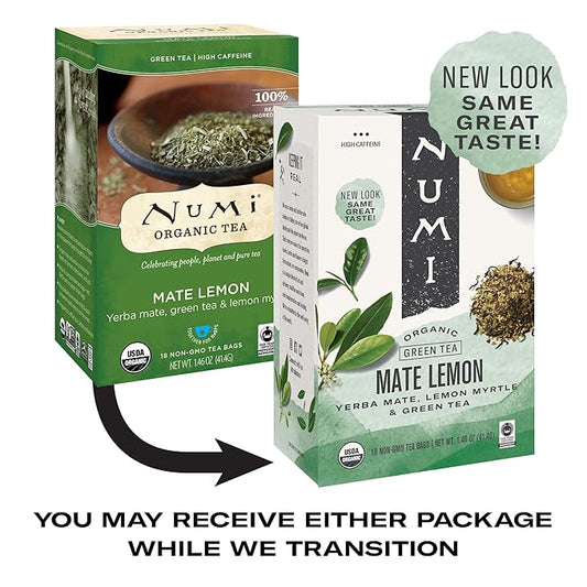 Numi Organic Tea Mate Lemon, Yerba Mate, Green Tea and Lemon Myrtle, 18 Count Tea Bags (Pack of 3)
