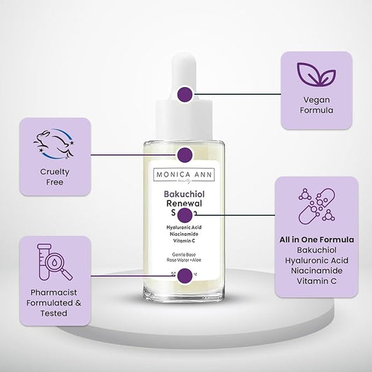 Bakuchiol Renewal Serum with Hyaluronic Acid, Niacinamide, and Vitamin C, 50ml