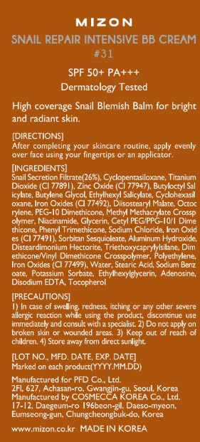 MIZON Snail Repair Blemish Balm, Multifunctional BB Cream Wrinkles (#27)
