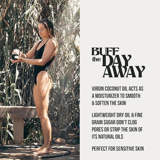 PIRETTE Coconut Oil Scrub, Women’s Beach Inspired Sugar Body Scrub, Safe for Sensitive Skin, Notes of Fresh Coconut, Surf Wax & Sunscreen, 8 Fl Oz