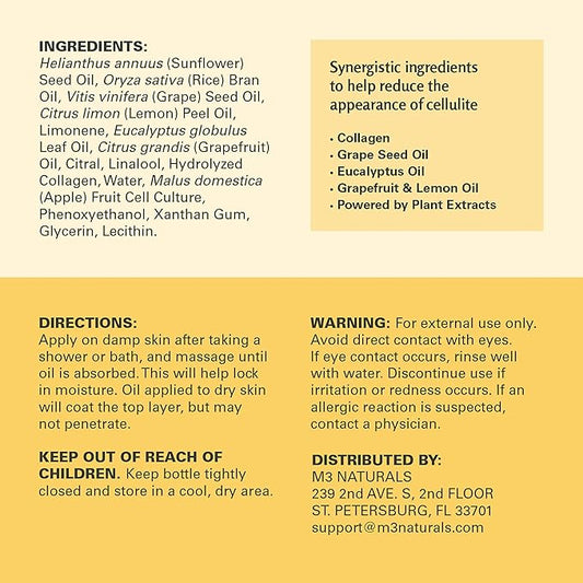 M3 Naturals Anti Cellulite Oil and Lymphatic Drainage Massager Kit | Fascia Blaster for Contoured & Smoother Skin | Muscle Roller for Sore Arms, Legs, Stomach & Buttocks