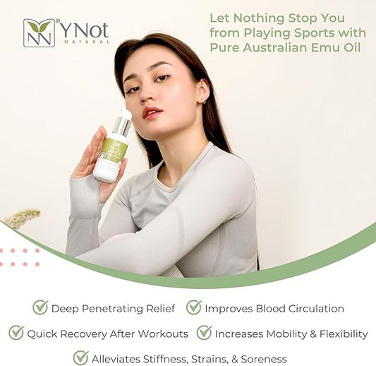 Sports Oil Muscle Rub with Pure Emu Oil, Omega 3 6 9, Tea Tree, Vitamin E, & Essential Oils - 100mL Deep Heat Rub for Joint, Back, Muscle Stiffness, Cramps & More by Y-Not Natural