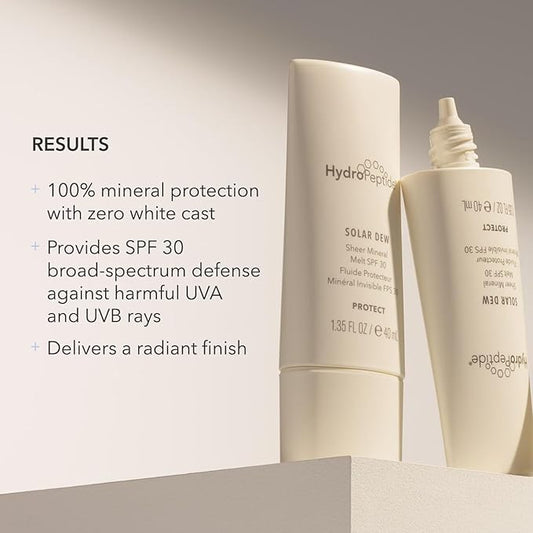 HydroPeptide Solar Dew Sheer Mineral Melt SPF30 Facial Moisturizer, Sunscreen & Primer, 1.35 Ounce