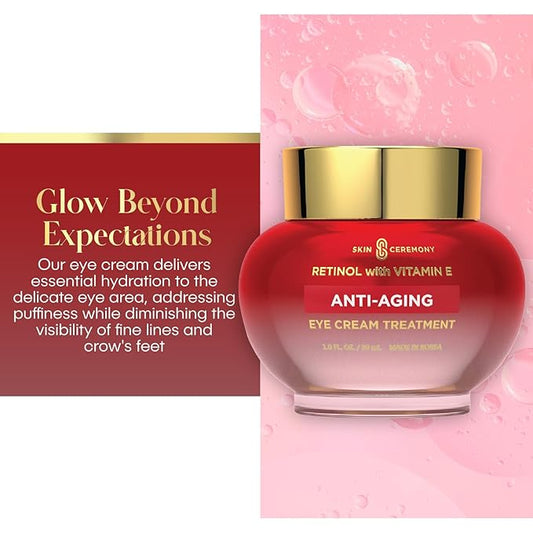 Retinol & Vitamin E Anti-Aging Eye Cream - Reduces Puffiness, Fine Lines & Crow’s Feet - Dermatologist Tested, Korean Skin Care for All Skin Types - 1.0 Fl. Oz