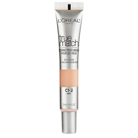 L'Oreal Paris True Match Eye Cream in a Concealer, 0.5% hyaluronic acid, Fair C1-2, 0.4 fl. oz.