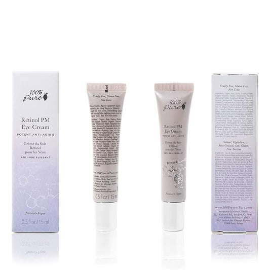 100% PURE Retinol Eye PM Cream, Anti-Aging Eye Cream for Wrinkles, Pure Retinol Cream, Wrinkle Cream Promotes Collagen (0.5 oz)