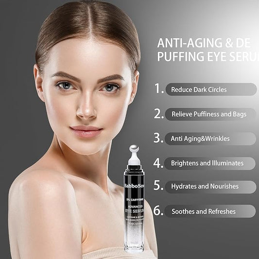 Eye Serum for Dark Circles and Puffiness - 5% Caffeine Under Eye Cream Anti Aging, with Retinol Hyaluronic Acid Niacinamide, Eye Serum for Eye Bags with 360° Eye Roller Ball for Women & Men