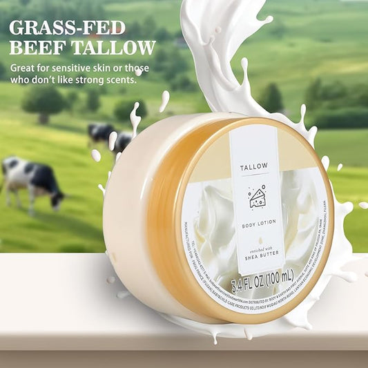 Tallow Lotion, Beef Tallow for Skin Face, Travel Size Body Lotion for Women and Men Dry Skin, Deep Moisturizing and Hydrating with Natural Shea Butter, Smell Good, 100ml(3.4floz)