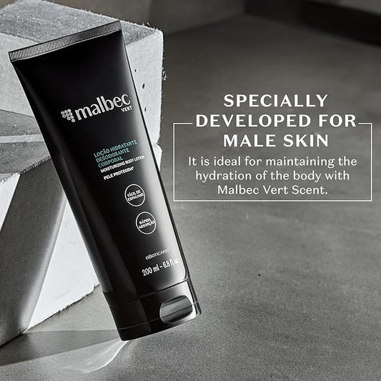 Malbec Vert Moisturizing Body Lotion for Men by O Boticário, Scented Moisturizer Non-Greasy Hydrating Cream for Dry Skin, 6.8 Ounce