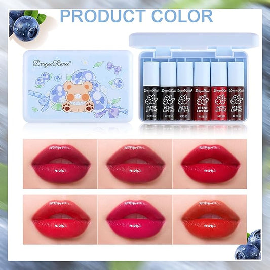 6 Colors Lip Tint Stain Set,Korean Lip Gloss Watery Lip Stain,Plumping Lip Gloss Mini Liquid Multi-use Lip & Cheek Tint Moisturizing,Long-lasting Waterproof Non-Sticky Cup Lip Makeup