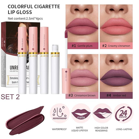 4 Colors Lipstick, Matte Liquid Lip Gloss Set, Long Lasting & Waterproof Natural Tube Red Lip Gloss Ingredients & Non-Sticky Lip Tint (Set C)