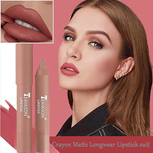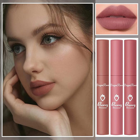 3 Piece Nude Matte Lipstick Set,Natural Velvet Air Moisture Smooth Crayon Lip Stain,Ultimate Nourishing Matte Lipstick 24 Hour Long Lasting Lip Gloss Lipstick for Women Makeup(Set A)