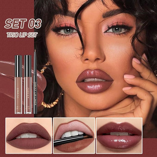 3 In 1 Liquid Lipstick Makeup Set, Non-stick Cup Matte Liquid Lipstick For Woman, Moisturizing Lip Gloss And Lip Liner, Long Lasting Lipstick 24H,Waterproof Velvet Liquid Lipstick Kit (03# Temperament Brown)