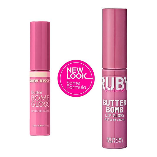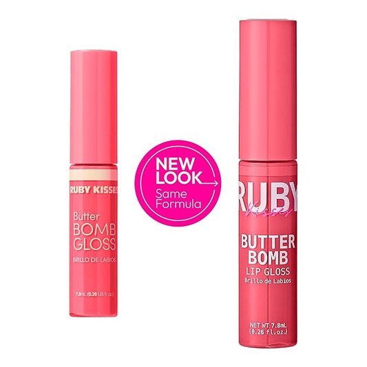 Ruby Kisses Lip Gloss Butter Bomb Gloss Non-Sticky Lip Gloss Vitamin E Natural Nude Lip Makeup - 7.8mL (0.26 US fl.oz) (Bubble Pop)