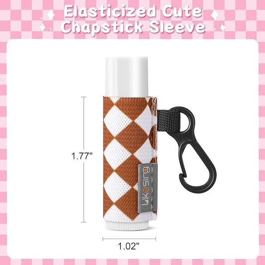 Chapstick Holder Keychain, Lip Balm Holder Sleeve Pouch with Clip On, Lip Gloss Lipstick Holder Keychain Fits More Standard Lip Balm, Gift for Women Girls Boys and Man(Checkerboard)