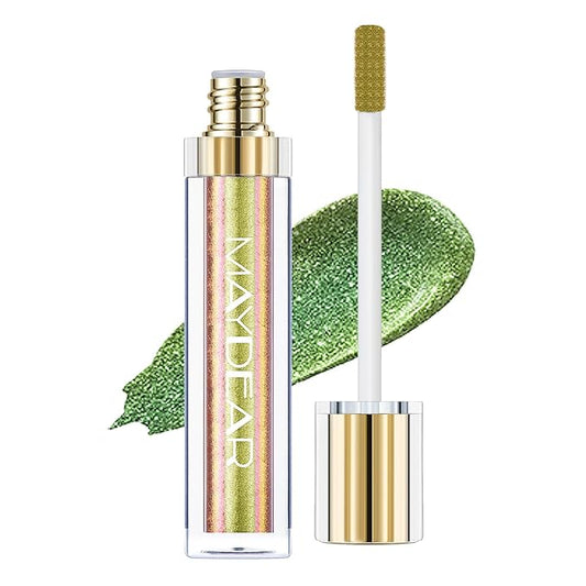 Maydear Chameleon Lipstick, High Pigmented Green Lipstick for Women Metallic Shine Lip Gloss, Full-Coverage Multichrome Lipstick Long Lasting Rainbow Lip Makeup, Golden Green(05)