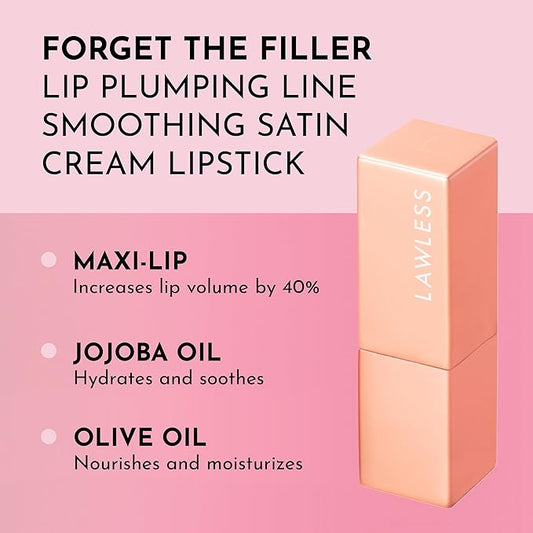 LAWLESS Forget the Filler Lip-Plumping Line-Smoothing Satin Cream Lipstick - Platinum - Natural Ingredients Smooth and Hydrate Lips for a Plumper, Fuller Look - 3.7g