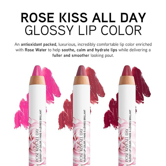 Physicians Formula Rosé Kiss All Day Glossy Lipstick LIp Color Makeup, Red, She's a Wild Rose | Dermatologist Tested, Clinicially Tested