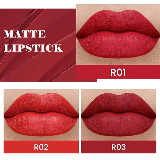 evpct 3Pcs Dark Light Bright Red Silky Velvet Matte Lipstick Pack Sets for Women,Ruby Red Long Lasting Smudge Proof Lip Stain Makeup Sets Kit 24 hours original