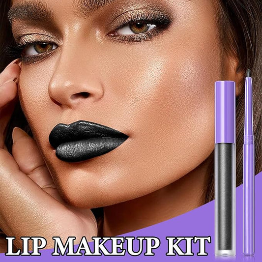2 PCS Black Lip Liner and Lipstick Set,Black High