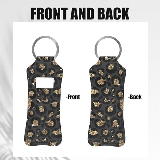 Black Gold Leopard Cheetah Chapstick Holder Keychain, Portable Gold