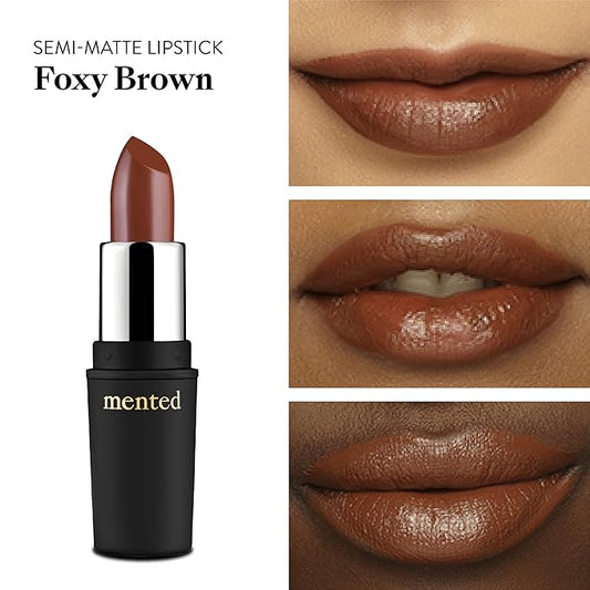 Mented Cosmetics | Semi Matte Nude Lipstick, Foxy Brown | Vegan, Paraben-free, Cruelty-free | Red and Brown, Dark, Long Lasting Lipstick