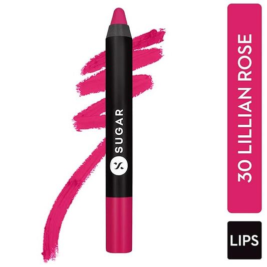 SUGAR Cosmetics Matte As Hell Crayon Lipstick30 Lillian Rose (Magenta) with SharpenerHighly pigmented, Creamy Texture, Long lasting Matte Finish