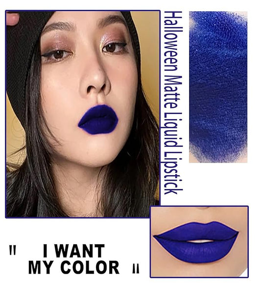 Dark Matte Liquid Lipstick for Women, Blue Long Lasting Waterproof Lip Gloss, Intense & Bold Color, High Pigmented Velvet Lip Stain for Masquerade, Party Goth Makeup, Cosplay (#12 Blue)