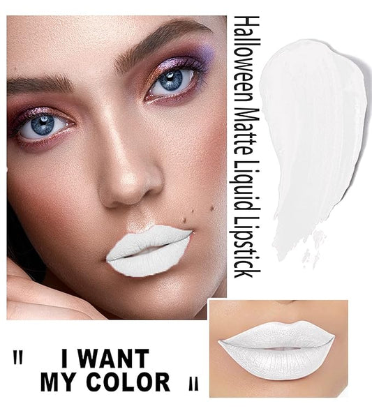 Halloween White Matte Liquid Lipstick for Women, Long Lasting Waterproof Lip Gloss, Face Body Painting, Non-Fading Lip Sculptor for Masquerade, Party Goth Makeup, Cosplay (#01 White)