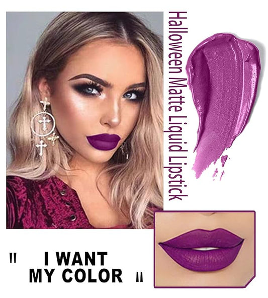 Halloween Dark Matte Liquid Lipstick for Women, Long Lasting Waterproof Lip Gloss, Face Body Painting, Vivid Vampire Lip Stain for Masquerade, Party Goth Makeup, Cosplay (#10 Charm Purple)