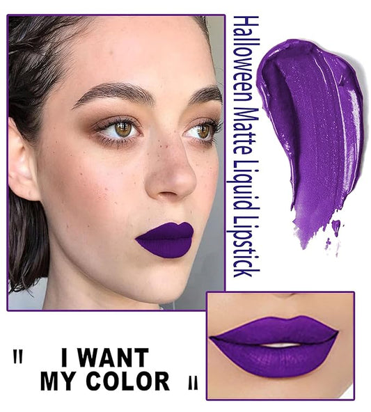 Halloween Dark Matte Liquid Lipstick for Women, Long Lasting Waterproof Lip Gloss, Face Body Painting, Vivid Vampire Lip Stain for Masquerade, Party Goth Makeup, Cosplay (#09 Purple)