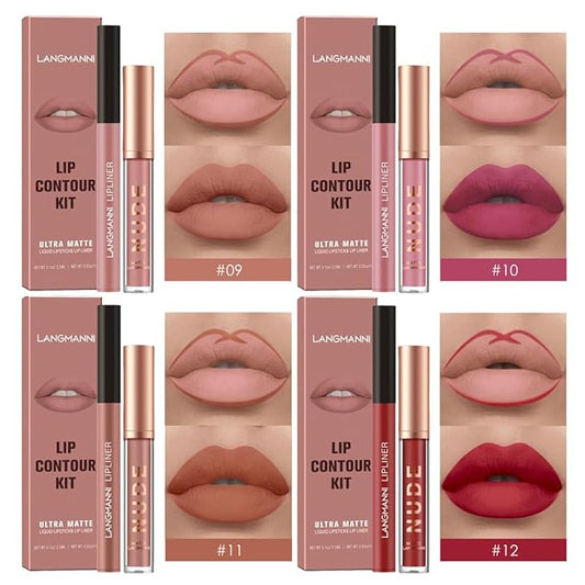 LANGMANNI 4pcs Matte Lipstick with Lipliners Durable Makeup Lipstick