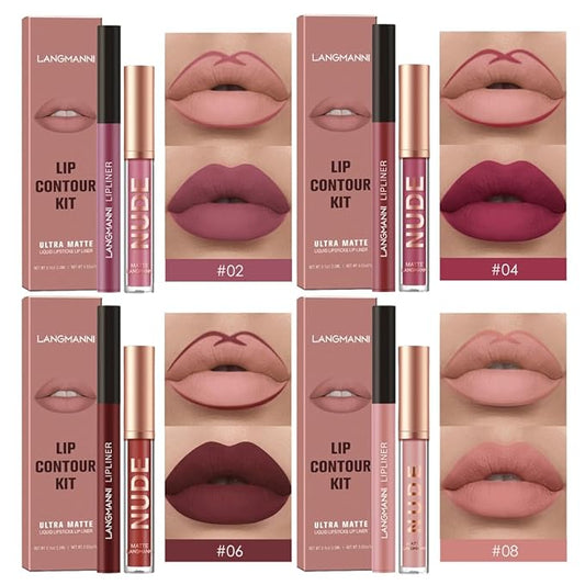 LANGMANNI 4pcs Matte Lipstick with Lipliners Durable Makeup Lipstick