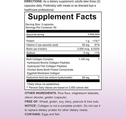 VYHTHY Multi-Collagen Capsules for Women & Men – 240 Count | Type I, II, III, V, X Hydrolyzed Collagen Peptides with Biotin, Hyaluronic Acid & Vitamin C | Hair, Skin, Nails, and Joint Support