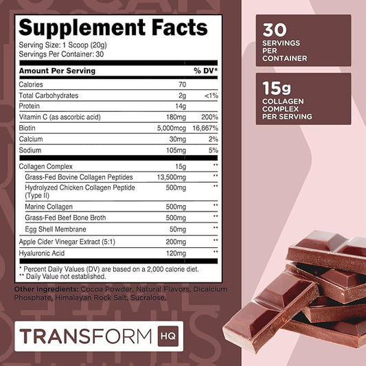 TransformHQ Beauty Collagen (30 Servings) Chocolate - Hair, Skin, & Nails Formula