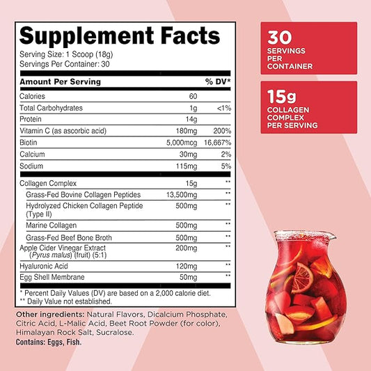 TransformHQ Beauty Collagen (30 Servings) Fruit Punch - Hair, Skin, & Nails Formula