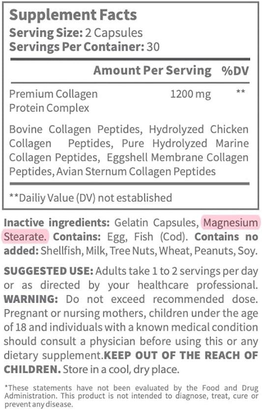 Multi Collagen Capsules Ultra Complex (Types I, II, III, V & X) Complex Multi Collagen Protein Blend for Anti-Aging, Hair, Skin, Nails and Joints, 1800mg Per Serving, 90 Capsules
