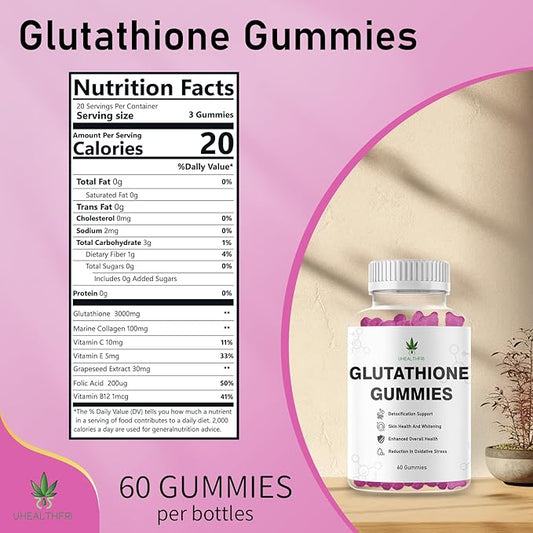 Glutathione Gummies - Skin Whitening Supplement for Women & Men Non-GMO Gluten-Free Glutathione Collagen Glow Gummies for Hair Skin Nails Muscle & Joint (1)