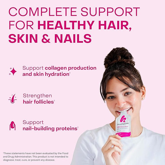 Healthycell Vibrant Hair Skin & Nails Daily Liquid Supplement - Beauty Supplements with Hydrating Nutrients & Essential Vitamins - Collagen, Biotin & Hyaluronic Acid - 30 Gel Packs