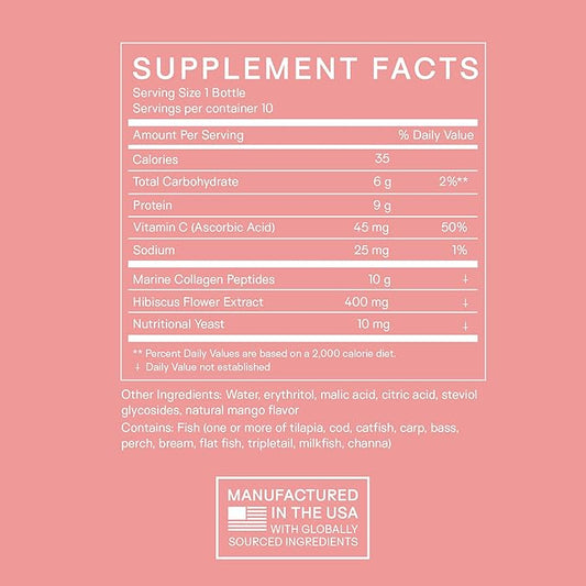 Glow Shot, 10,000mg Marine Collagen Peptides, Liposomal Delivery, Promotes Skin Hydration, Elasticity & Radiance, Supports Hair & Nails, Ready-to-Drink, No Sugar, Non-GMO, 30 Shots
