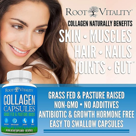 Collagen Peptides Capsules - Grass-Fed, Pasture-Raised Hydrolyzed Protein Supplement for Skin, Hair, & Nails - Non-GMO, Zero Sugar Daily Pills for Men & Women (180 Capsules)