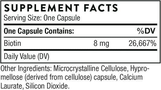THORNE Biotin 8 - Vitamin B7 (Biotin) for Healthy Hair, Nails, and Skin* - 60 Capsules