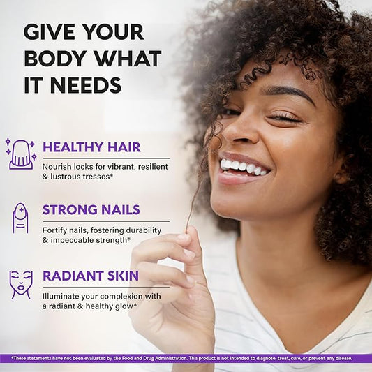 Biotin | Collagen | Keratin - Clinically Tested Supplement - Hair Growth Support, Skin & Nails - 25000 mcg Vitamins B2, B3, B6 & B7 + B1 & Hyaluronic Acid - Made in USA - Women & Men | 60 Capsules