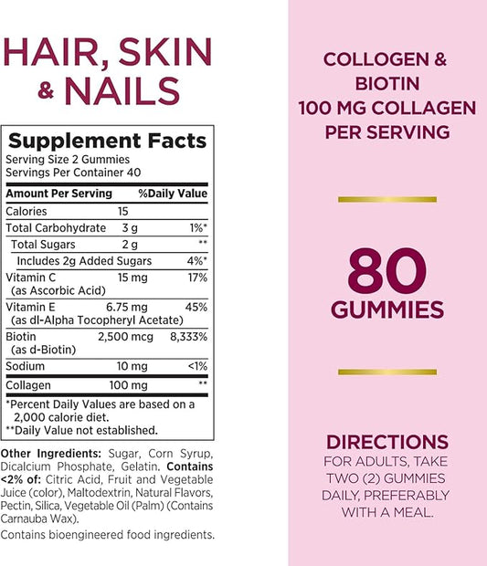 Nature's Bounty Hair, Skin & Nails with Biotin and Collagen, Supports Hair Skin and Nail Health, 2500 mcg, Citrus Flavored Gummies, 140 Ct